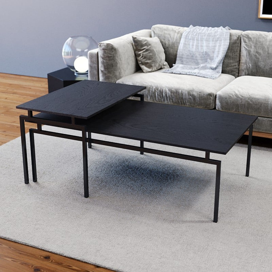 זוג שולחנות מעוצבים לסלון דגם ברידג אלון שחור