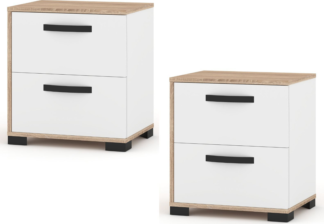 זוג שידות לילה עם 2 מגירות בצבע אלון בשילוב לבן רוחב 50 ס"מ דגם ונוס