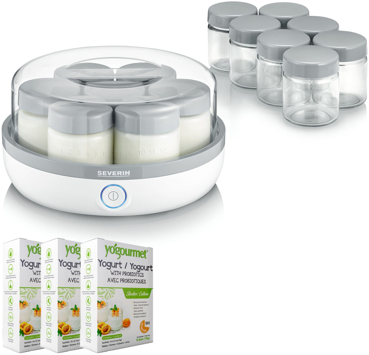 ערכה ביתית מלאה להכנת יוגורט הכוללת 3 מארזי חיידקי יוגורט + מכשיר להכנת יוגורט SEVERIN JG3520