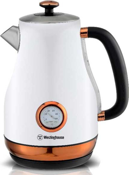 קומקום נירוסטה עם מד טמפרטורה בצבע לבן פנינה ונחושת