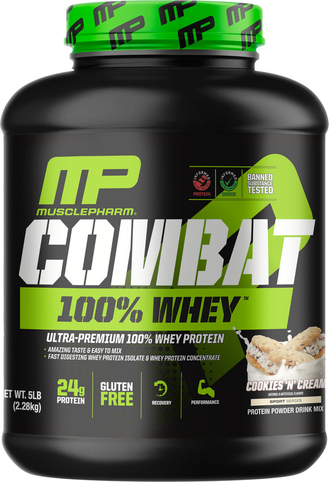 אבקת חלבון MusclePharm Combat 100% Whey מאסל פארם קומבט וואי 2.3 ק"ג - קרם-עוגיות