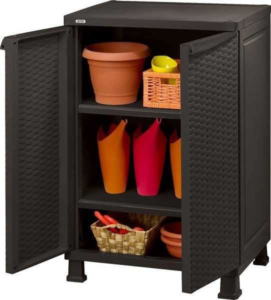 ארון שירות ראטן Base Matrix - טקסטורת ראטן ודלתות ניתנות לנעילה חום שוקולד