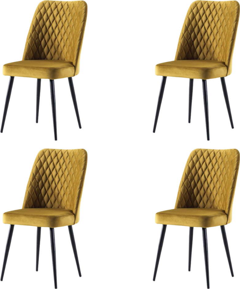 ארבעה כסאות מעוצבים לפינת אוכל רגלי ברזל אמריקן חרדל כהה