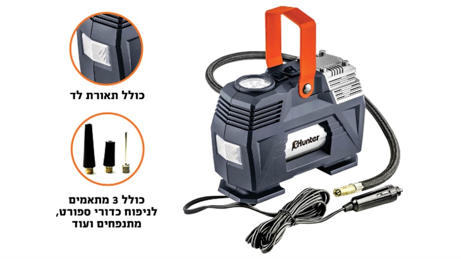 Hunter - קומפרסור מיני לרכב 12V כולל תאורת לד - כולל משלוח