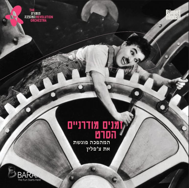 זמנים מודרניים - המהפכה פוגשת את צ'פלין - 90 שנה אחרי הבכורה הקולנועית, תזמורת המהפכה מלווה בנגינה חיה את הקרנת הקלאסיקה הקולנועית שבמרכזה ביקורת שנונה ומתריסה על העולם המודרני, באמצעות שיאים של הומור פיזי, דימויים נצחיים, אבחנות אנושיות חכמות וסצינת סיום בה נשמע לראשונה קולו של צ'פלין. חוויה קולנועית מוזיקלית עם הופעה בלתי נשכחת, מרגשת ומצחיקה עד דמעות של צ'פלין בסרטו האילם האחרון. הפיק, ביים, כתב, ערך, הלחין ומככב בתפקיד הראשי צ'רלי צ'פלין מנצח רועי אופנהיים מנהלים אמנותיים זהר שרון ורועי אופנהיים קרדיט תמונה Modern Times Roy Export S.A.S Music for Modern Times Copyright Roy Export Company Ltd and Bourne Co. All rights reserved .Charlie ChaplinTM Bubbles Incorporated S.A