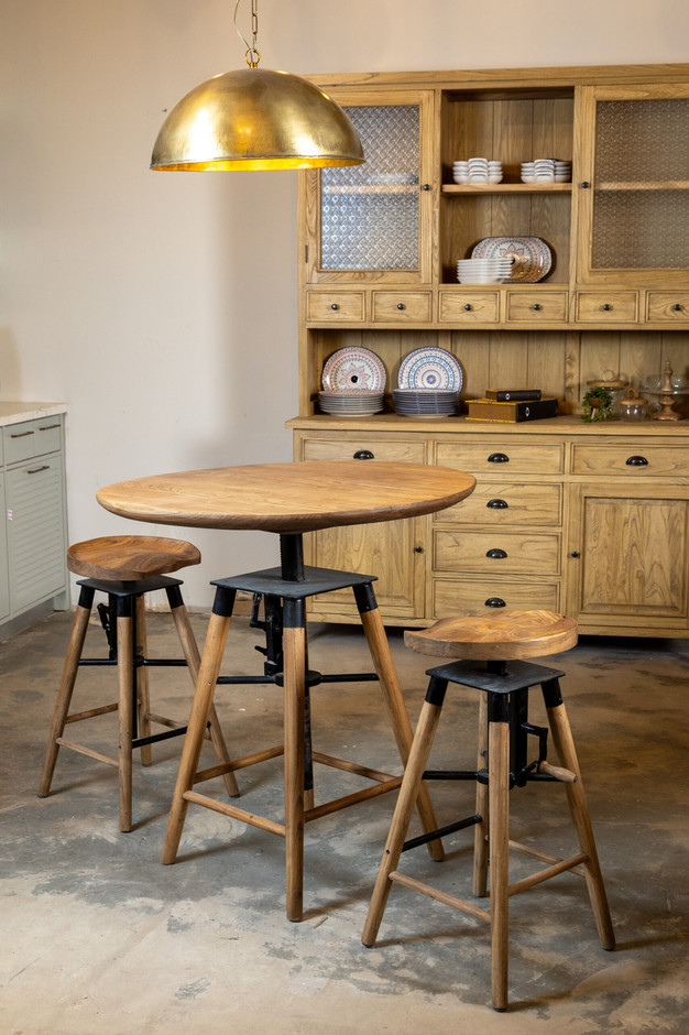 שולחן בר מתכוונן עגול עץ מלא 5 מידות לבחירה-110 ס"מ
